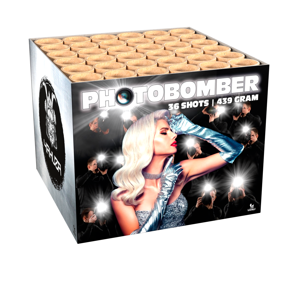 Photobomber - 36 Schuss XXL-Batterie Kaliber 25mm. Movingstar-Effekte in Kombination mit leuchtstarken Farb- und Blinksternen.