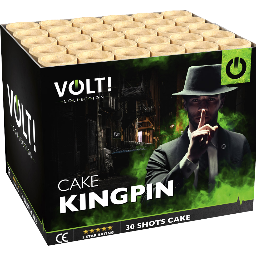 Die 30-Schuss-Feuerwerksbatterie Kingpin aus der VOLT! Serie von Lesli macht dich zum King in der Nachbarschaft. Jede Reihe hat einen anderen goldenen Effekt, kombiniert mit einem unterstützenden Effekt.