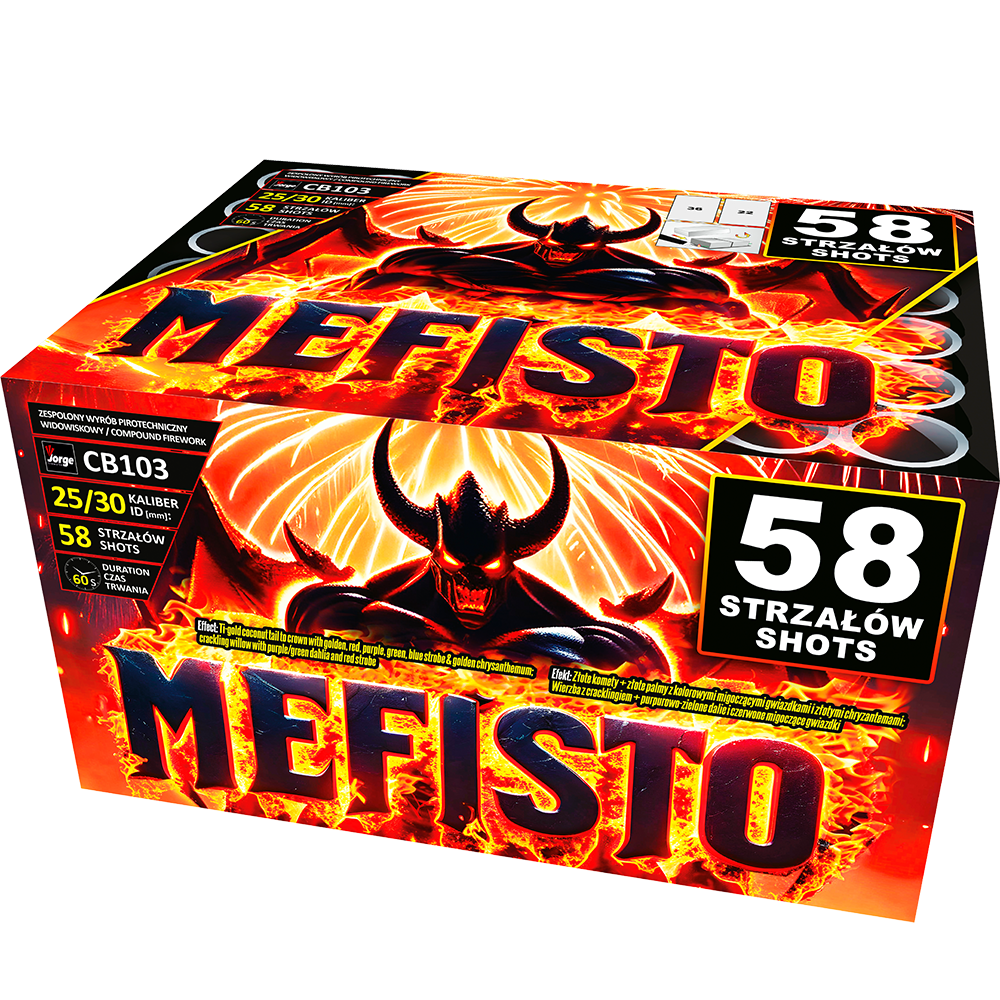 58 Schuss Verbundfeuerwerk von Jorge Fireworks. Im Wechsel geschossene Coconut Kometen mit Brokatkronen und Dahlien. Knisterpalmen mit farbigen Sternen machen diesen Verbund ausergwöhnlich.
