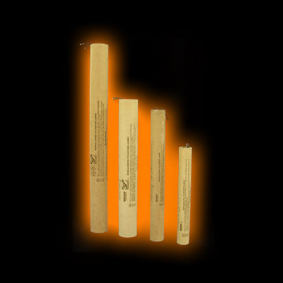 Unsere klassischen Bengalflammen sind die absoluten „Universalwaffen“ zur effektvollen Illuminierung von Gebäuden, Flächen oder Gegenständen. Der Begriff „Bengalisches Feuer“, so schön er klingt, beschreibt prinzipiell einen pyrotechnischen Effekt, der durch bestimmte Flammensätze erzeugt wird. Kein Rauch ohne Feuer gilt bei den „Bengalos“ in der Regel ganz besonders, da die handelsüblichen Handfackeln durch eine besonders starke Rauchentwicklung auffallen. Die Stadiongänger unter uns kennen das Bild der grell leuchtenden Flammen und der dichten Rauchschwaden von vielen Fußballspielen. Hierzu sollte allerdings erwähnt werden, dass „Bengalos“ zwar generell von volljährigen Personen erworben werden dürfen, wenn die Produkte eine gültige BAM-Nummer tragen – bei der Verwendung an öffentlichen Plätzen sollte man jedoch Vorsicht walten lassen und sich nach den jeweils geltenden Gesetzen und Vorschriften erkundigen, da sonst ein böses Erwachen folgen kann. Auch wenn der Kauf von illegal nach Deutschland eingeführten Bengalos ohne BAM-Nummer noch so günstig und attraktiv scheint: Nach den Buchstaben des Gesetzes ist dies seit dem Jahr 2005 eine Straftat und wird entsprechend geahndet.